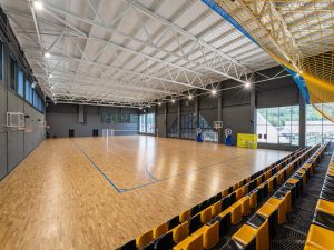 Спортивний паркет — це преміальне покриття для баскетбольних майданчиків у критих спортзалах, яке поєднує природну еластичність, високий рівень комфорту, безпеку та довговічність. Дерев’яний паркет зроблений із твердих порід (дуб, клен, бук, гевея тощо), що забезпечує оптимальний баланс між гасінням удару та відскоком м’яча — важливою характеристикою для баскетболу та інших командних ігор. Такі підлогові системи вже відшліфовані та покриті лаком на заводі, готові до експлуатації одразу після монтажу, мають відмінні теплоізоляційні та звукопоглинаючі властивості, а також екологічність і приємну текстуру на дотик.