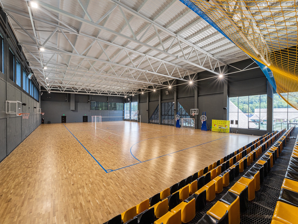 Playwood S.14 — базова система з еластичним шаром та тришаровою дошкою (14 мм), ідеальна для шкільних залів;